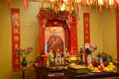 The temple honors Kwun Ti, a warrior from the Three Kingdoms period, who represents loyalty and strength for the Chinese community.