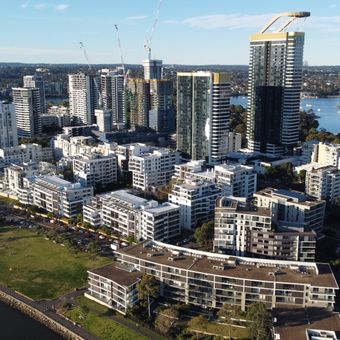 Rhodes sits on a peninsula between Bray Bay and Homebush Bay, positioned 12 kilometers west of Sydney central business district.