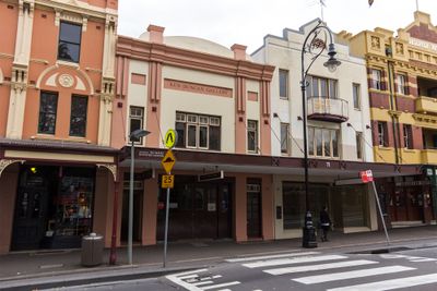 The Old Ambulance Station at 73 George Street is a Victorian-Georgian building featuring a distinctive Art Nouveau facade across two floors with ten individual rooms. Today it operates as a commercial space while maintaining its historical character in The Rocks district.