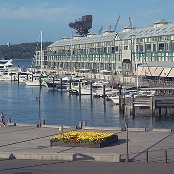 The Finger Wharf, constructed for maritime operations, now houses residential spaces, dining establishments, and accommodation facilities.