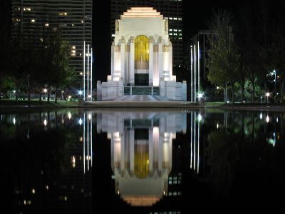 The Art Deco monument features monumental figural reliefs and sculptures by Rayner Hoff on its exterior granite walls from Bathurst quarries.