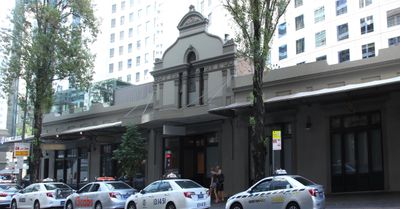 The building represents the transformation of Sydney's commercial architecture, with its rendered brickwork and iron roof reflecting 19th-century construction methods.