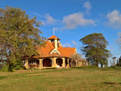 Mount Wilga House features Federation Queen Anne architectural style with a single-story layout spread across its Manor Road location in Hornsby.