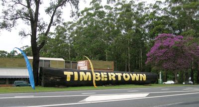 Timbertown extends across 39 hectares of coastal blackbutt forest, featuring replicas of colonial-era buildings and timber industry demonstrations throughout the grounds.