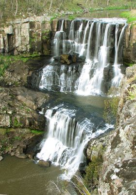 Ebor Falls consists of two cascades dropping 115 meters over four layers of columned basalt rock into a deep forested valley below.
