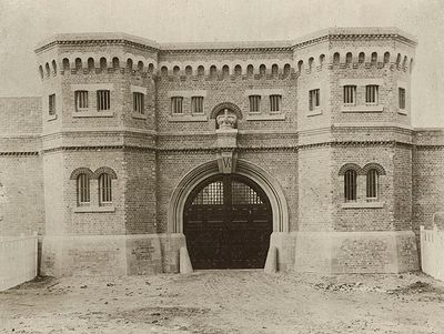 The correctional facility features Federation architecture with brick walls, sandstone trim, and terracotta tiles across its central compound and cell ranges.