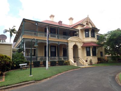The building houses administrative offices and contains multiple structures, including the original weatherboard stables that have been converted into a garage.
