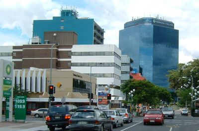 Toowong extends between Mount Coot-tha and the Brisbane River, featuring residential areas with traditional homes and modern developments across rolling hills.
