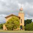 The Shepherd Memorial Church of St Peter features cream-colored Wondai bricks, high walls, and a low-pitched tile roof at Drake Street and Wondai Road.