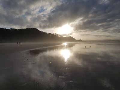 The beach connects directly to Cape Byron Lighthouse via steep steps, offering access to Australia's most easterly point and frequent dolphin sightings.