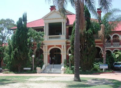 The Federation-style building contains decorative stained glass windows, ornate plaster moldings, and deep verandas reflecting early 1900s Australian architecture.