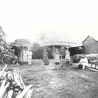 John and Emily Mayes arrived from England in 1871, selecting 321 acres of land at Scrubby Creek where they constructed their first slab hut in 1872.