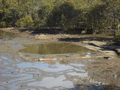 The Deception Bay Sea Baths consist of two rectangular pools carved from sandstone formations along the Queensland foreshore, measuring 4.3 by 2.7 meters and 3 by 1.8 meters.