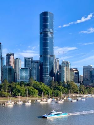 The Brisbane Skytower marks the evolution of Brisbane's architectural development, standing as the tallest structure in the city's expanding skyline.