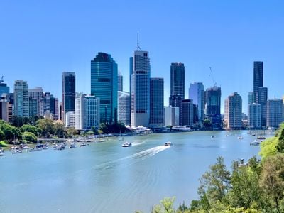 Brisbane extends along the Brisbane River with skyscrapers in the Central Business District and residential neighborhoods spreading across surrounding hills.