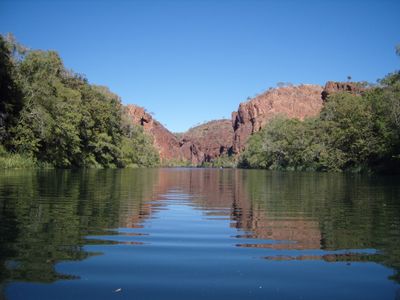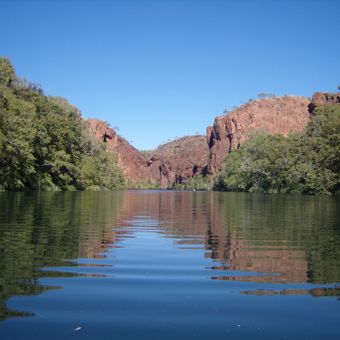 Boodjamulla is a nature reserve in Queensland featuring deep gorges, sandstone cliffs, and permanent waterholes along Lawn Hill Creek. Dense vegetation and varied rock formations create the distinctive character of this large protected area.
