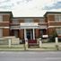 The two-story masonry court building features red face brickwork, rendered string courses, and a portico supported by Doric columns at its main entrance.
