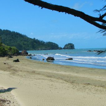 Cape Hillsborough National Park is a coastal nature reserve featuring volcanic rock formations, eucalyptus woodlands, and mangrove wetlands. Long sandy beaches extend along the shoreline, creating distinct habitats where different ecosystems meet.