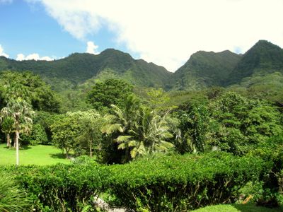 The Lyon Arboretum encompasses 193 acres of tropical plants, native Hawaiian species, and research facilities in the rainforest climate of Oahu.