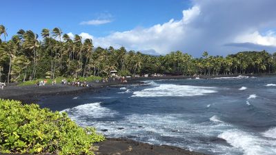 Punaluʻu Beach, Black sand beach in Hawaii County, United States.
