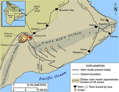 East Rift Zone, zone of tectonic weakness on the eastern flank of Kīlauea