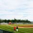 The stadium features natural grass playing field surrounded by spruce trees, with covered grandstand seating and room for 1,300 spectators.