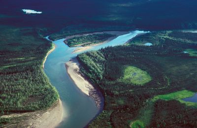 The river follows a narrow corridor one mile wide through the mountains, serving as a migration route for three major caribou herds.
