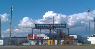 Growden Memorial Park features artificial turf infield, natural grass outfield, and multiple seating arrangements including original box seats from Seattle's Sick's Stadium.