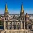 The Metropolitan Cathedral of Guadalajara stands with two neo-Gothic towers, a central dome, and eleven side altars across its seventy-seven meter length.