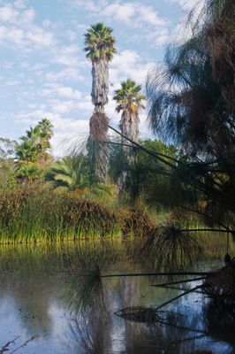 South Coast Botanic Garden is a sprawling park covering about 87 acres with Mediterranean plants, tropical species, roses, and water features distributed throughout. The collection includes flowering trees and desert plants suited to the Southern California climate.
