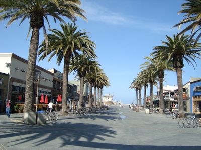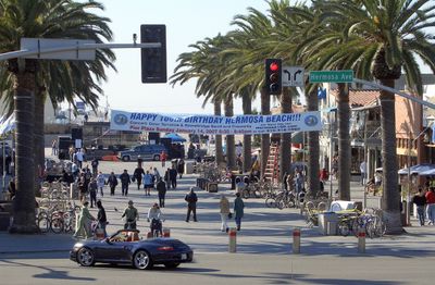 The Strand, a paved path running along the beach, connects Hermosa Beach with Manhattan Beach and Redondo Beach for cyclists and pedestrians.