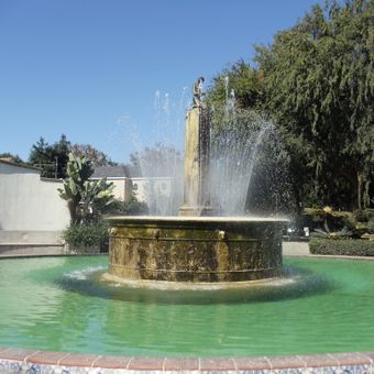 Ceramic mosaic tiles surrounding the fountain contain inlaid patterns that tell stories about Beverly Hills' founding and growth. These details are easy to miss but offer insights into the city's early origins for visitors who take time to examine them closely.