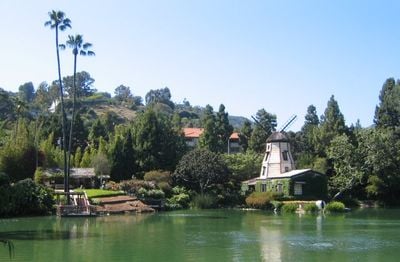 The Self-Realization Fellowship Lake Shrine encompasses 10 acres of gardens surrounding a spring-fed lake with waterfalls, fountains, and diverse wildlife.