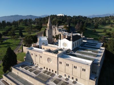 Founded in 1906, Forest Lawn transformed under Hubert Eaton's 1917 management, introducing the memorial-park concept that replaced traditional upright grave markers with ground-level designs.