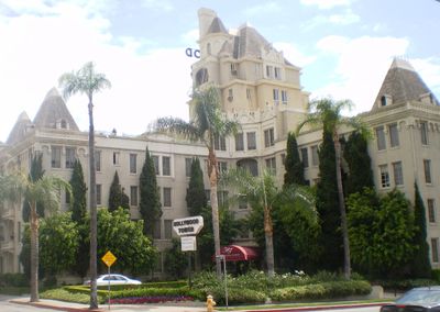 The Hollywood Tower rises thirteen stories above Hollywood featuring a French Normandy architectural design with fifty apartments and three penthouse units.