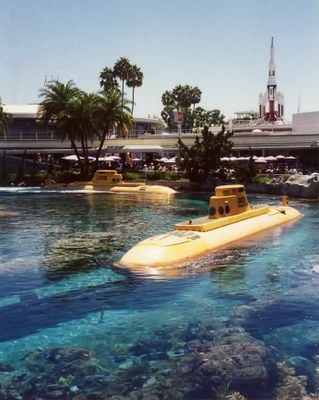 Submarine Voyage is an underwater ride at Disneyland, California, where eight yellow vessels travel through artificial lagoons. Each vessel has portholes along the sides through which riders see sea creatures, sunken ships, and rock formations.