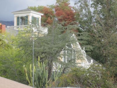 Visitors can examine the exterior architectural elements of this private residence from the street while researching its history through national archives.