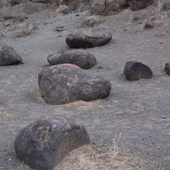 Painted Rock Petroglyph Site is an archaeological site containing thousands of ancient rock carvings in Maricopa County. The designs are etched into dark basalt boulders arranged across a granite formation.