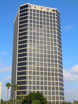 The structure contains 338,482 square feet of office space across 24 floors, with 8 elevators serving the various business tenants.