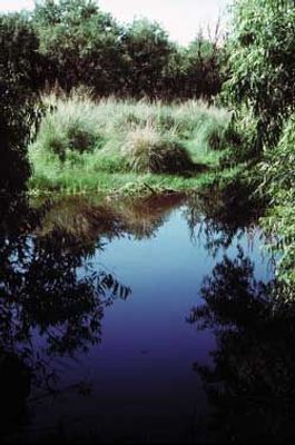 The conservation area contains rare Southwest habitats including marshlands, cottonwood-willow forests, and sacaton grasslands in a desert-transition zone.