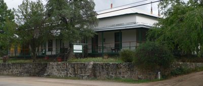 The original adobe section of the L-shaped main house measures 29 by 40 feet and includes a northern porch facing the street.