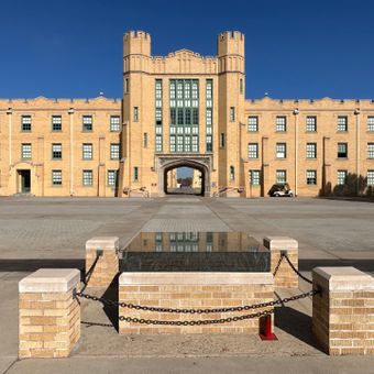 The New Mexico Military Institute occupies extensive grounds with classroom buildings, training fields, and dormitories for cadets in Roswell. The architecture combines functional facilities with open green spaces that reflect the military character of the school.
