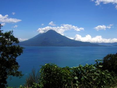 Lago de Atitlán, Volcanic crater lake in Sololá Department, Guatemala.