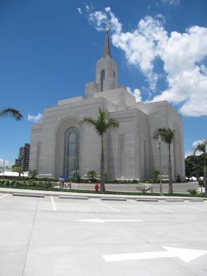 The San Salvador El Salvador Temple is a religious building of the Church of Jesus Christ of Latter-day Saints in Antiguo Cuscatlán. This three-story structure features white Brazilian granite walls with a central spire and contains instruction rooms, sealing chambers, and a baptistry.