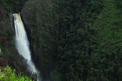 The water plunges down a vertical cliff face in a single uninterrupted cascade, forming a white veil against the dark rock surface.
