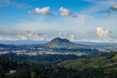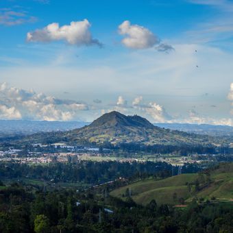 La Ceja sits at an elevation of 2150 meters in Eastern Antioquia, surrounded by rolling hills and valleys with numerous waterfalls within its territory.