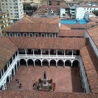 Our Lady of the Rosary University is a private institution located in central Bogotá within a complex of buildings displaying Spanish colonial design. The campus spans multiple locations across the city and houses five faculties and four schools offering programs in law, natural sciences, economics, international studies, and creative fields.