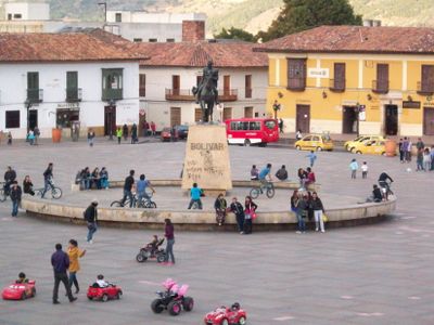 Initially established as Plaza Mayor during colonial times, the square received its current name in 1847 after Pietro Tenerani's statue of Simón Bolívar was installed.
