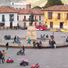 The four corners of the plaza house the Primary Cathedral, National Capitol, Palace of Justice, and Liévano Palace, representing religious, legislative, judicial, and executive powers.