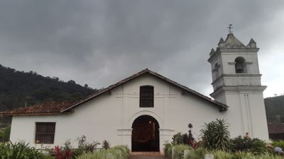 Orosi Church is a colonial-era church building in Orosi Valley, defined by adobe walls and terracotta roof tiles. The interior is arranged with wooden pews that create an intimate worship space, and an adjacent museum houses religious art from the colonial period.